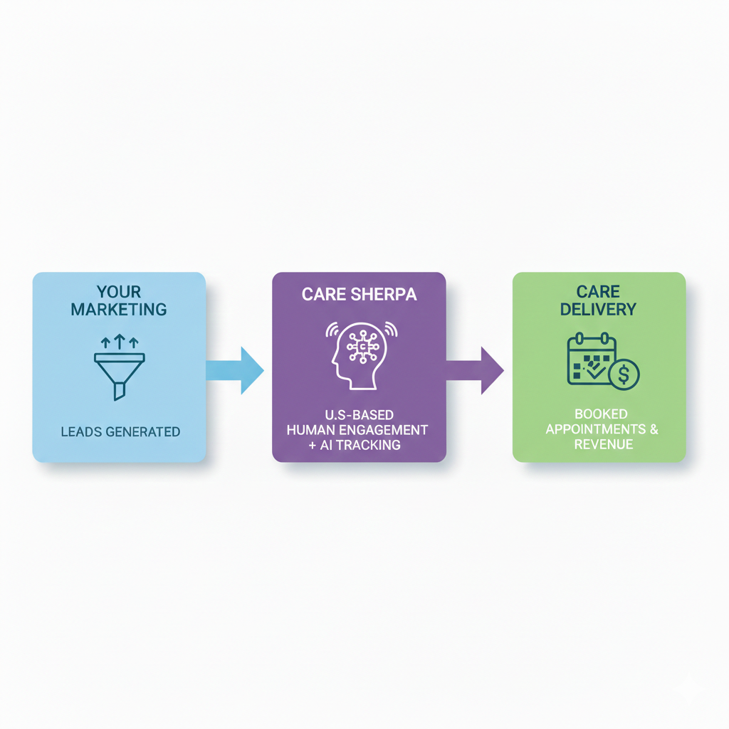 Care Sherpa solves the last-mile problem between marketing interest and patient action. We ensure every lead is contacted, qualified, educated, and guided to care — quickly, personally, and consistently.